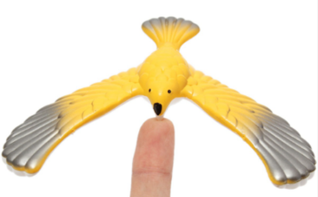 - Je kind kan ook iets kiezen uit onze afleidingsdoos. Bijvoorbeeld een balansvogel. Wat dat is, zie je op de foto hieronder. Deze vogel kun je op je vinger laten balanceren. Je kind heeft dan even alleen aandacht voor de vogel.