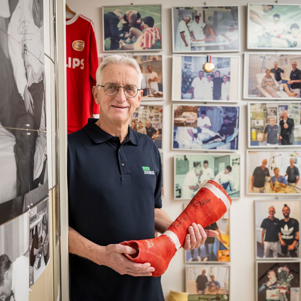 Sommige collega’s hielpen andersom hem weer op weg. Zo heeft oud traumachirurg en clubarts Cees-Rein van den Hoogenband een belangrijke rol gespeeld in zijn carrière. “Hij stimuleerde me om me te specialiseren als gipsverbandmeester. Hij zag iets in mij en gaf me het vertrouwen om die rol te pakken. Zonder hem was mijn loopbaan anders gelopen. Je hebt mensen nodig die je zien en je verder helpen.”