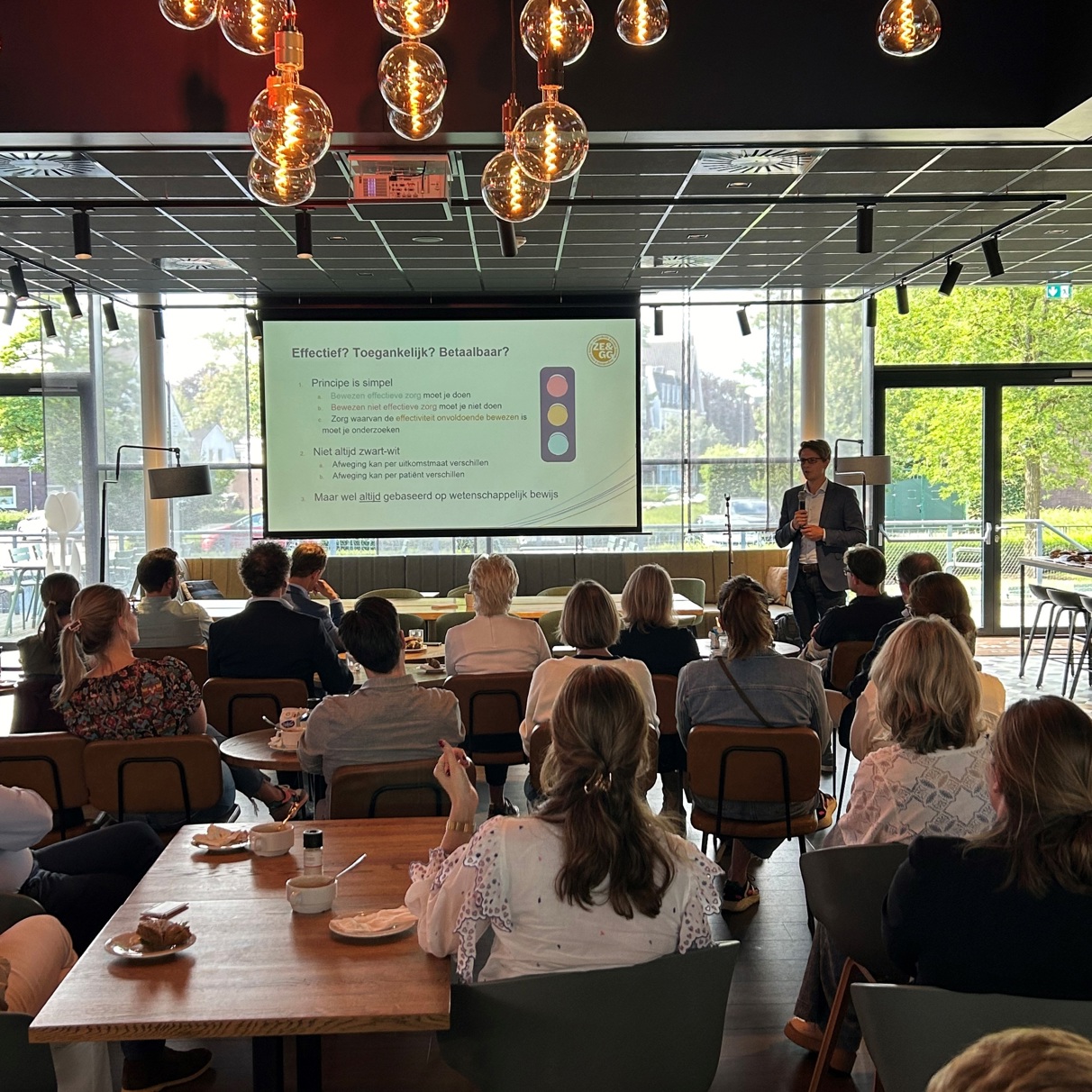 De aanwezige beleidsadviseurs van ZE&GG benadrukten hoe belangrijk het is dat we met z’n allen voortdurend kennis blijven ophalen en implementeren. Welke zorg werkt wel of juist minder goed voor welke patiënt en op welke manier? En hoe kunnen we het verbeterproces versnellen zodat het niet jaren en jaren duurt voordat een verbetering doorgevoerd is?