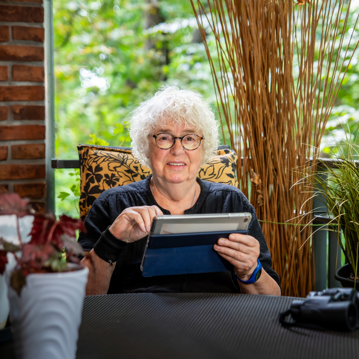 Vanuit haar werk als vormgever is Fia gewend veel met computers te werken. Dat is ze blijven doen, ook toen ze weer een carrièreswitch maakte, naar de gehandicaptenzorg dit keer. “En nog steeds zit ik iedere dag wel even aan de computer en op de iPad.” Toen Fia dus de uitnodiging kreeg van Anna Ziekenhuis om de Patient Journey App voor Parkinson te gaan gebruiken, installeerde ze deze meteen. “Nog vóór de informatieavond zat ik er al in. In de app staat allerlei informatie. Heel veel wist ik al, maar je komt toch altijd weer nieuwe dingen tegen. Bijvoorbeeld dat medicijnen beter worden opgenomen in een zuurdere maag. Ik nam al vitamine C bij de medicijnen, maar las in de app dat Spa rood hierbij ook helpt.”